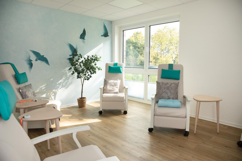 Wir freuen uns, Sie in unserer neuen, erst im Herbst 2025 eröffneten, Tagespflege – Im Grünen begrüßen zu dürfen. Modern, offen und hell gestaltet, lädt unsere Einrichtung dazu ein, den Tag in einer angenehmen Atmosphäre zu verbringen.